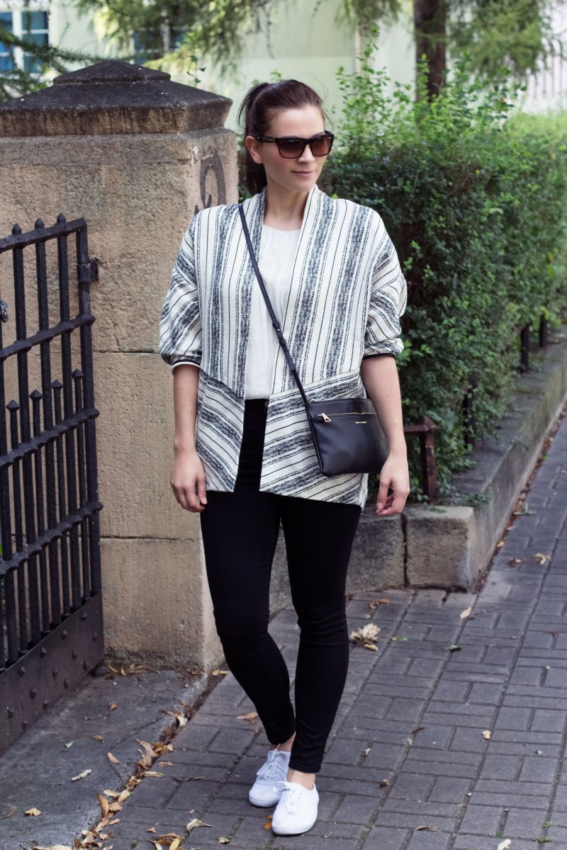 Diesen Look würde ich auch genauso tragen! Der Blazer ist ein Traum! Das Muster ist einfach toll und schwarz-weiß geht immer, auch im Sommer. Aber so passt es wirklich zum grausigen Herbstwetter im August!