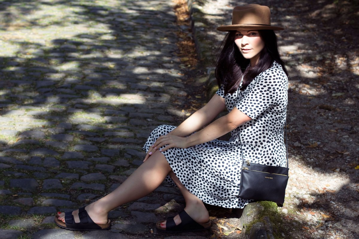 Tupfen, Kleckse und Punkte verdrehen mit derzeit den Kopf. Meine Leidenschaft für dies peppigen Prints präsentierte ich euch bereits in meinem Outfit „Schwarz-Weiss in den Herbst“. Damals als Top und heute in einem Komplett-Look mit Kleid. Als ich die schwarz-weißen Tupfen sah, war das Kleid bereits bestellt und kaum angekommen, konnte ich mich nicht mehr von dem eleganten Kleidungsstück trennen. Deshalb zeige ich euch zum Montag einen Look im Tupfenkleid.