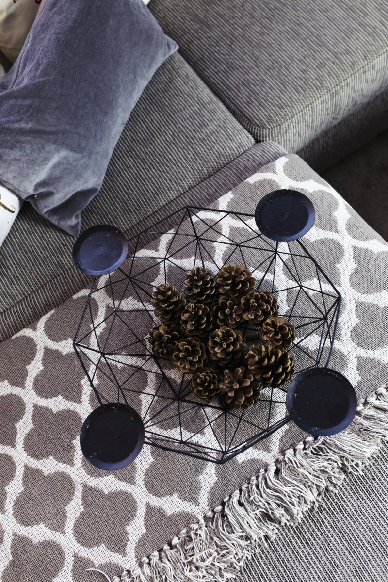 5. Stellt die Kerzen auf den Dekokerzenhalter und platziert ihn an dem richtigen Ort in der Wohnung. Ich habe meinen Adventskranz im Wohnzimmer auf den Wohnzimmertisch gestellt. Alternativ könnt ihr das Gesteck aber auch in der Küche auf den Küchentisch platzieren. Viel Spaß beim Dekorieren und Nachmachen!