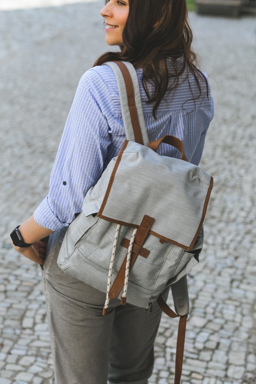 Schönes Outfit. Ich mag so gemütliche Outfits 🙂 Dein Rucksack ist besonders schön. Passt da ein 15“ Laptop rein?