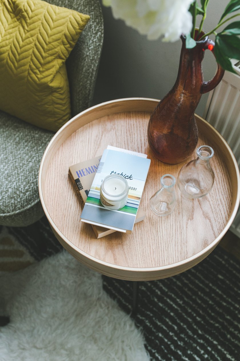 Auch die Wahl der richtigen Accessoires macht die Leseecke zu einem Ort der Gemütlichkeit. Angefangen bei einem kleinen Beistelltisch, der ansprechend je nach Lust und Laune dekoriert werden kann. Bis hin zur Wahl der richtigen Textilien, die den Bereich Wärme und Gemütlichkeit verleihen.