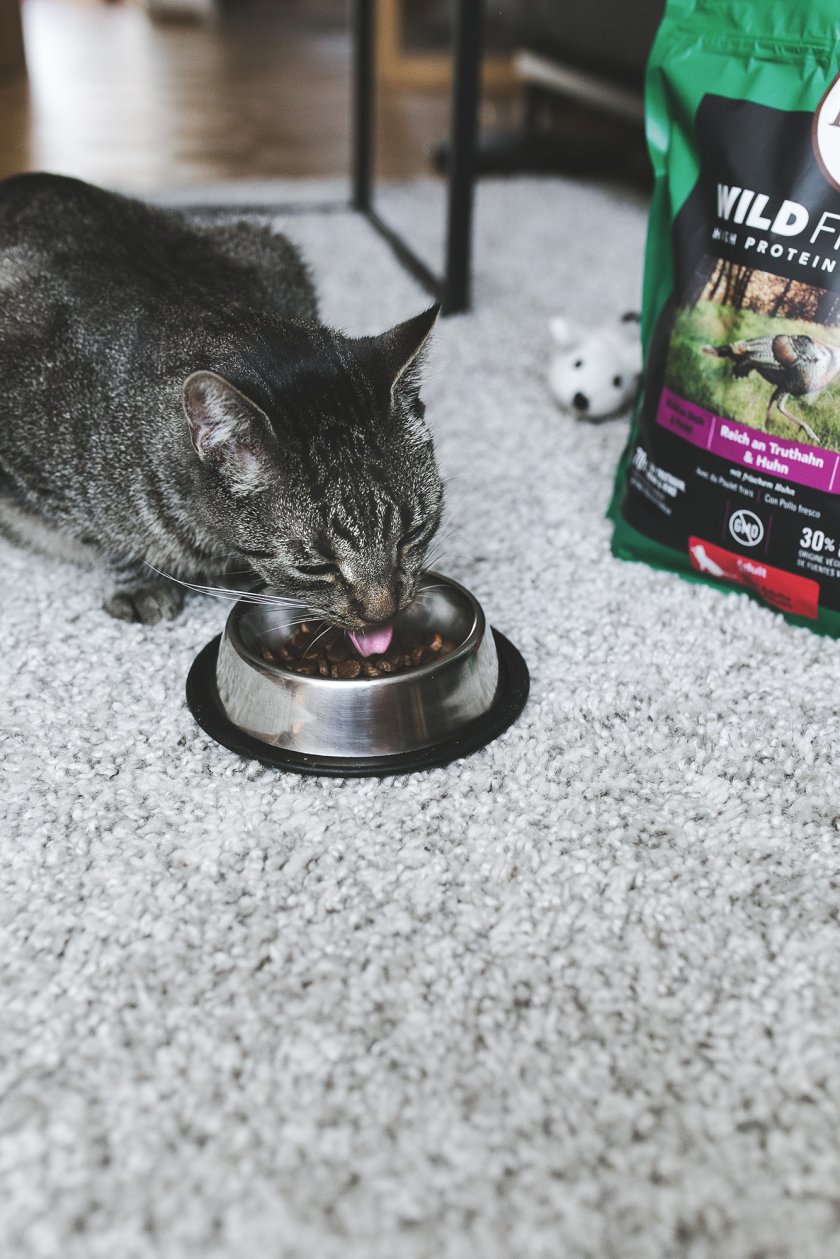 Beide bekommen einen Mix aus Nass- und Trockenfutter und damit fahren wir sehr gut. Dies kann aber auch variieren, wenn ich unterwegs bin. Dann bietet Trockenfutter eine sehr gute Möglichkeit, dass die Katzen gut versorgt sind. Das Futter kann über Stunden, auch bei heißen Temperaturen, im Napf verbleiben ohne schlecht zu werden.