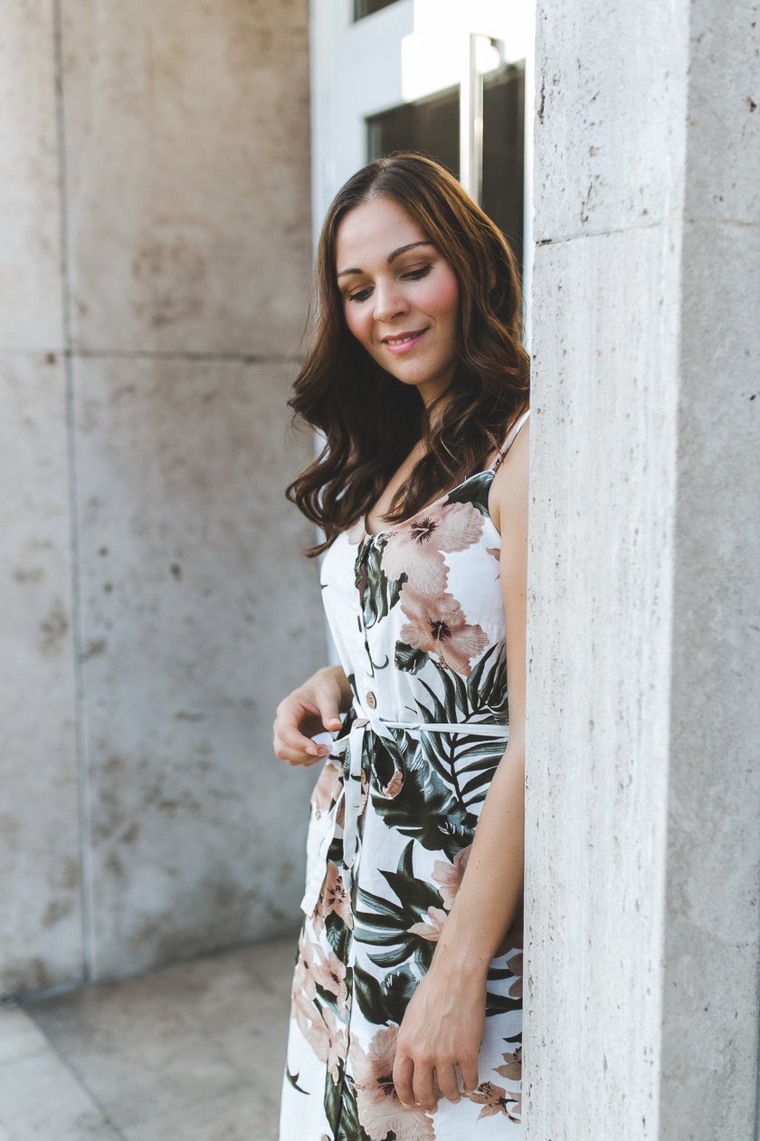 Elegantes Sommeroutfit mit geblümten Sommerkleid zum Nachshoppen!