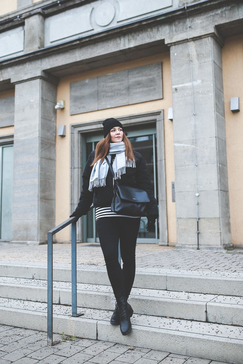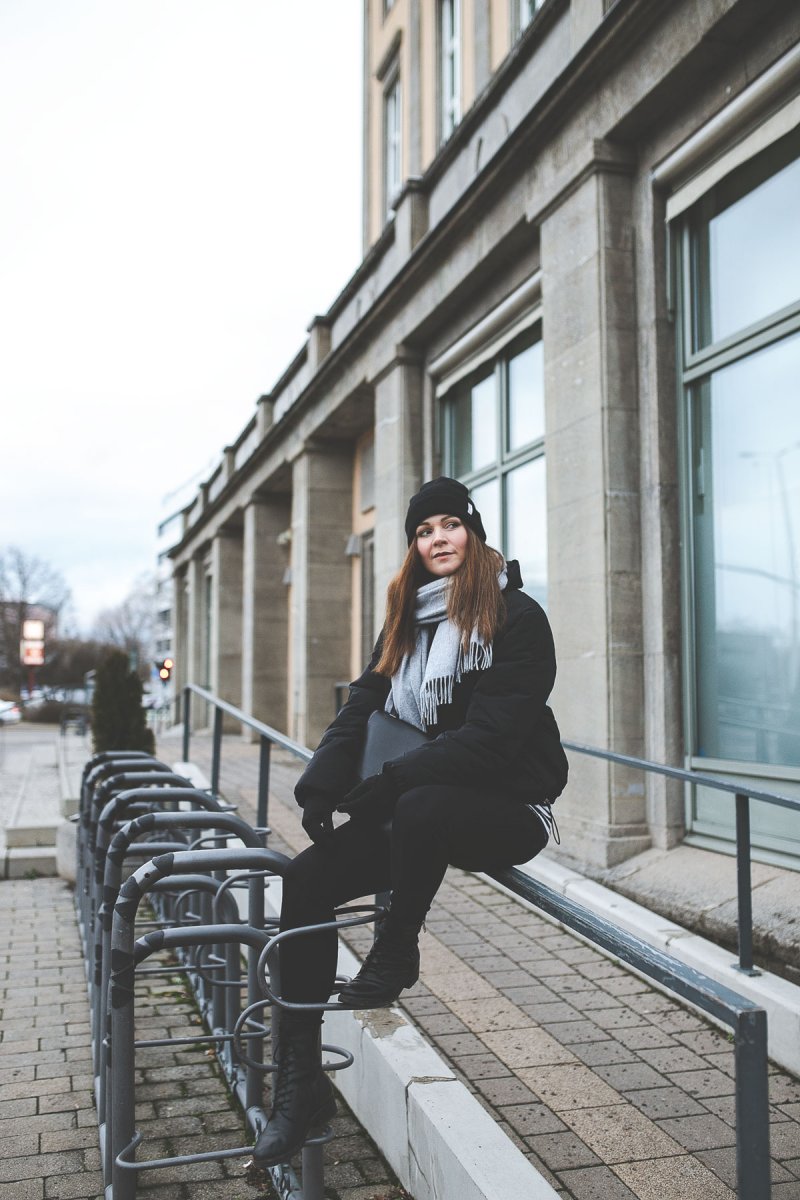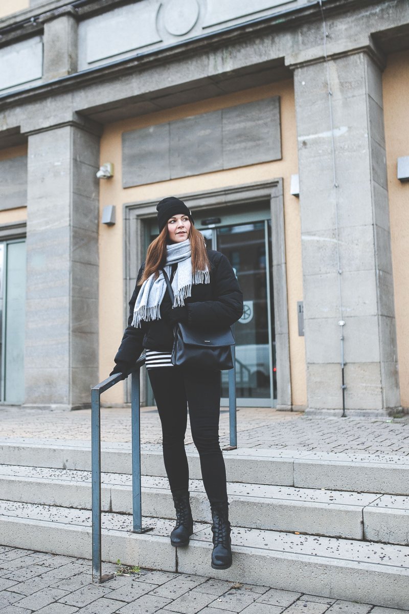 Zu dieser Farbe greife ich immer, wenn ich Teile vielseitige kombinieren möchte, denn Schwarz trägt sich einfach zu allem. Ein wahrer Allrounder also, der nach Lust und Laune auch gerne mal 24/7 getragen werden kann. Bei meinem ersten Puffer habe ich mich für ein kurzes Modell entschieden. Besonders wichtig war mir beim Kauf, dass die Jacke ohne Daunenfedern auskommt. Sie sollte wattiert sein. So kann ich meinen Puffer mit guten Gewissen ausführen und frieren muss ich trotzdem nicht.