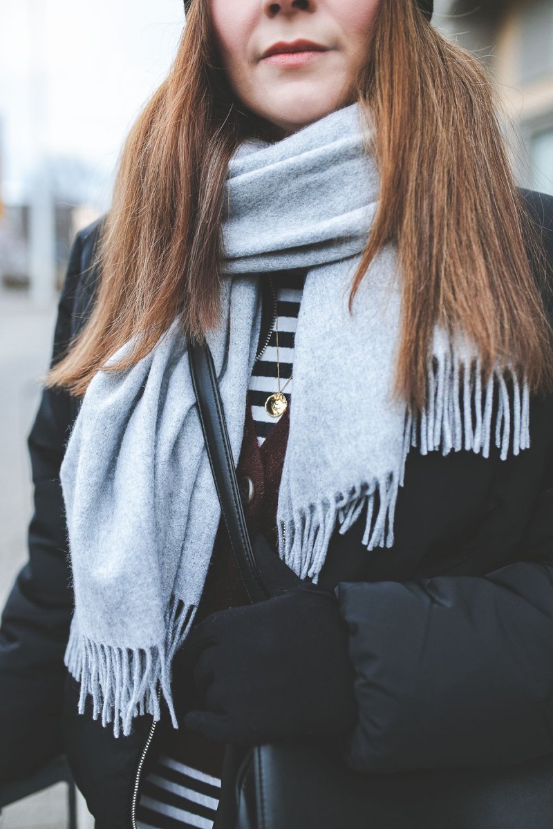Ein weiteres Label, dem ich seit Jahren immer wieder gerne einen Besuch abstatte, ist COS. Vor allem, wenn ich in Berlin unterwegs bin, komme ich immer wieder gerne in die Stores. Vor allem die Strickmode der Marke hat es mir angetan. Der graue Schal gehört neben meinem Acne Modell zu meinem liebsten Begleiter im Alltag.