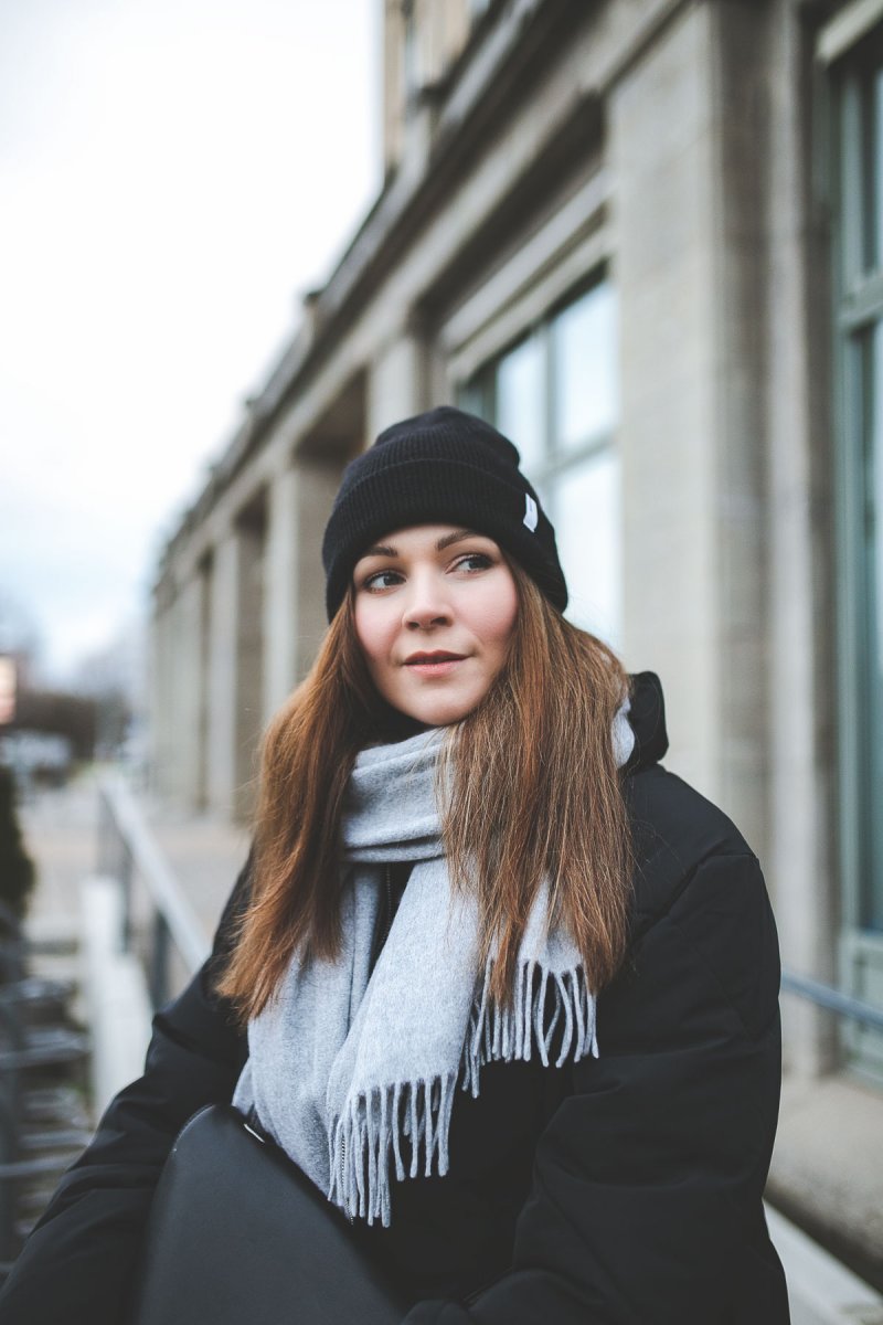 Ein Label, dass ich bereits vor zwei Jahren für mich entdeckt habe, ist Samsøe & Samsøe. Das skandinavische Brand steht für tragbare Ästhetik. Ich liebe die Gradlinigkeit der nordischen Brands über alles. Samsoøe & Samsoøe ebt auf jeden Fall diese Philosophie. Ganz neue bei mir eingezogen, ist die schwarze Mütze des Brands. Sie ist perfekt, um mich vor frostigen Temperaturen zu schützen.