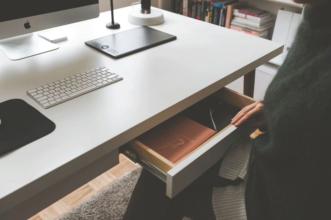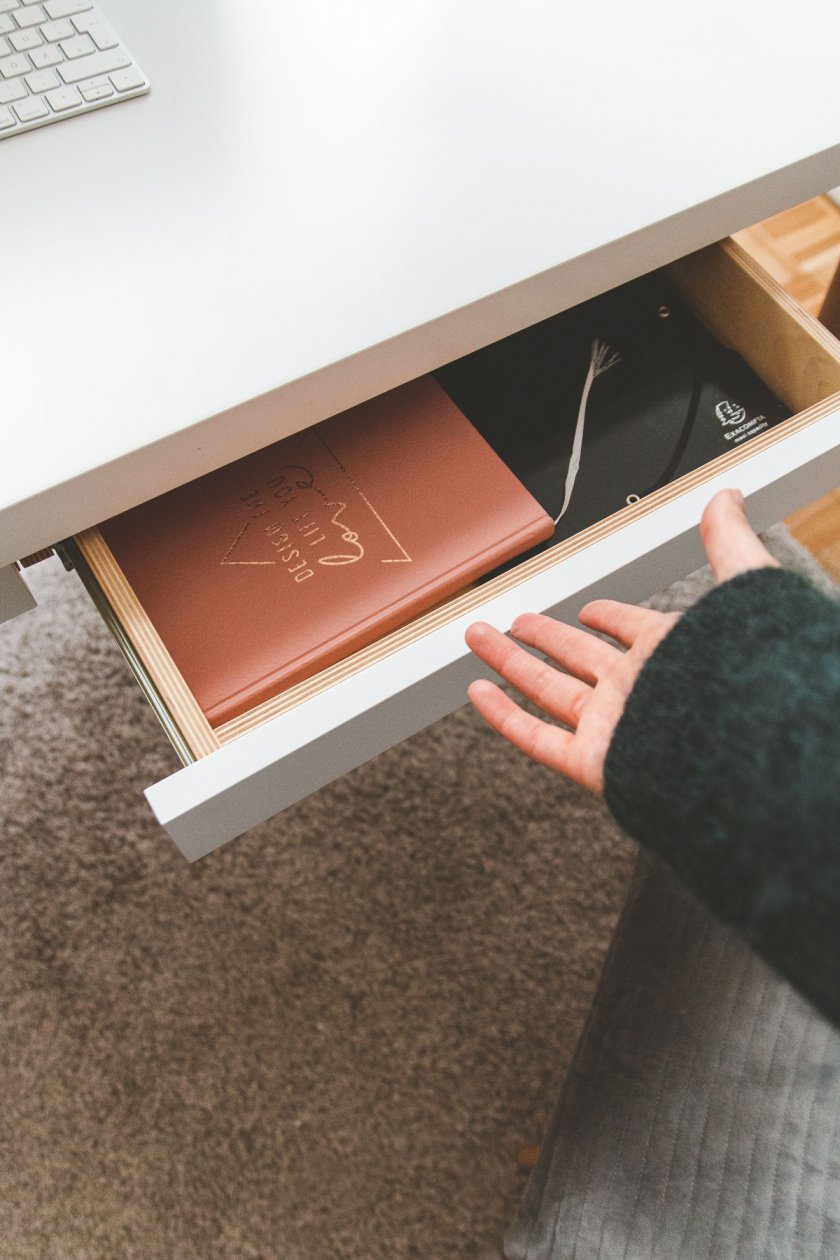 Ein weiteres sehr wichtiges Thema an meinem Arbeitsplatz ist Stauraum. Von meinem alten Tisch war ich diesbezüglich schon etwas verwöhnt, denn in ihm hatte ich sehr viele Möglichkeiten, Dinge des täglichen Gebrauchs zu verstauen. Und auf diesen Luxus wollte ich auch an meinem neuen Schreibtisch nicht verzichten. Mein neuer Schreibtisch hat insgesamt 4 Schubladen. Zwei auf jeder Seite, die jede Menge Staumöglichkeiten bieten. Ich bin superhappy damit und habe auch problemlos meine Schreibtischutensilien unterbekommen.
