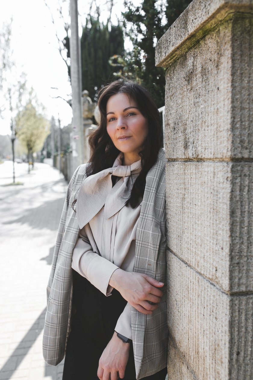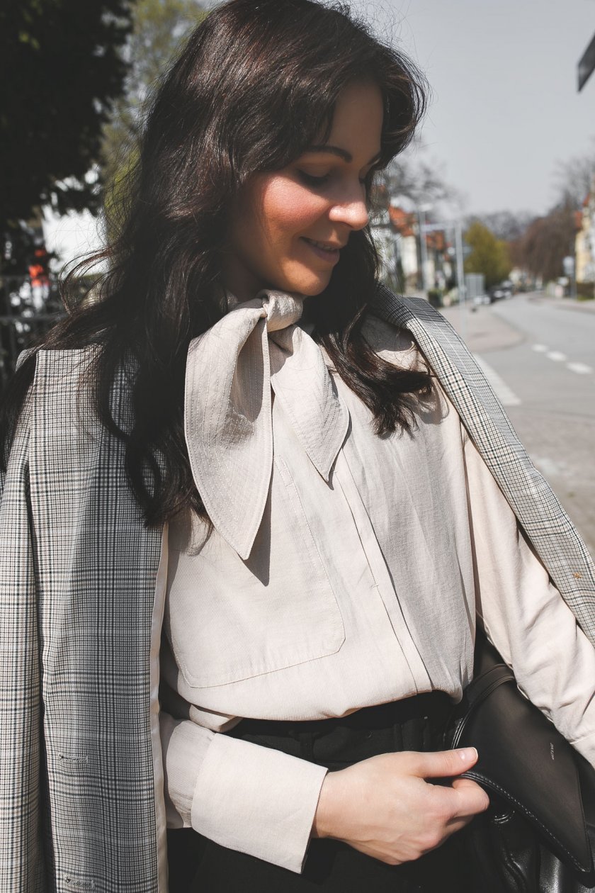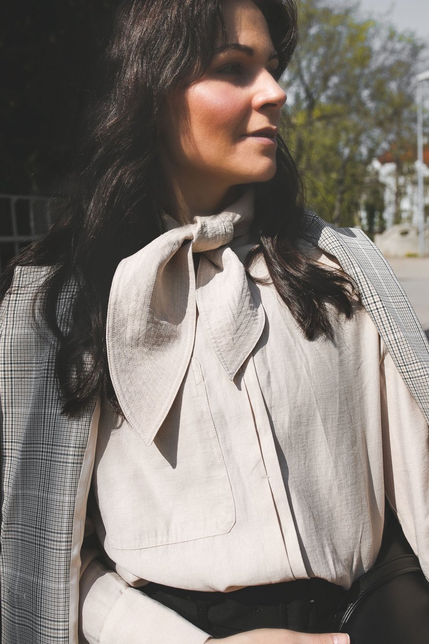 Wie für die Bluse gemacht, ist der karierte Blazer, den ich euch in diesem Outfit Post hier auf dem Modeblog schon vorgestellt habe. Karo Jacketts sind in diesem Frühling 2019 einer der Modetrends, an denen ihr nach wie vor nicht vorbei kommt. Vor allem die dezenten kleinkariteren Muster sind der Hit in der Frühlings- und Sommergarderobe.