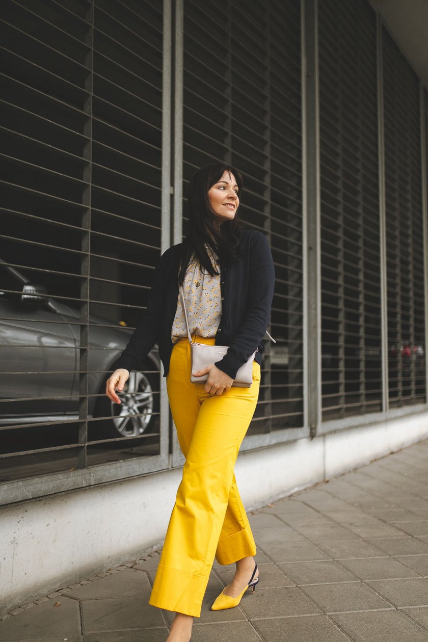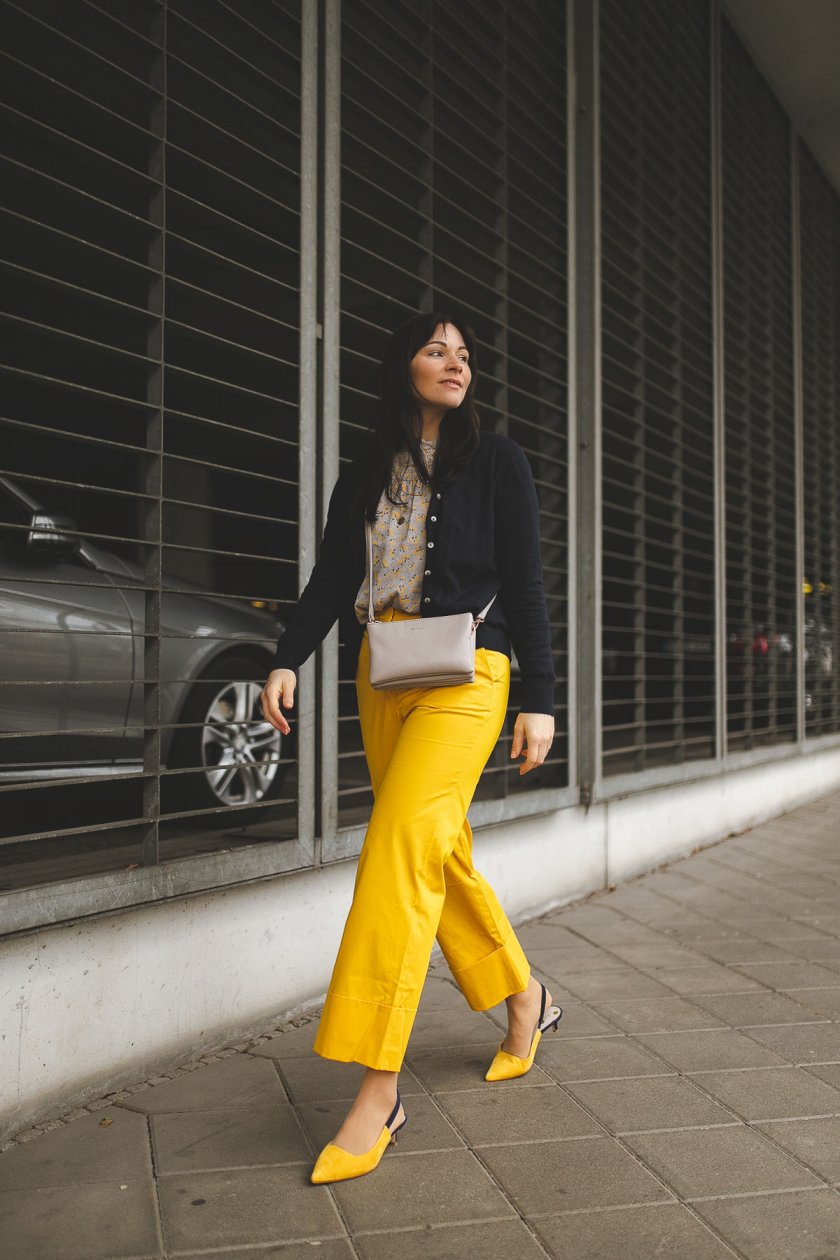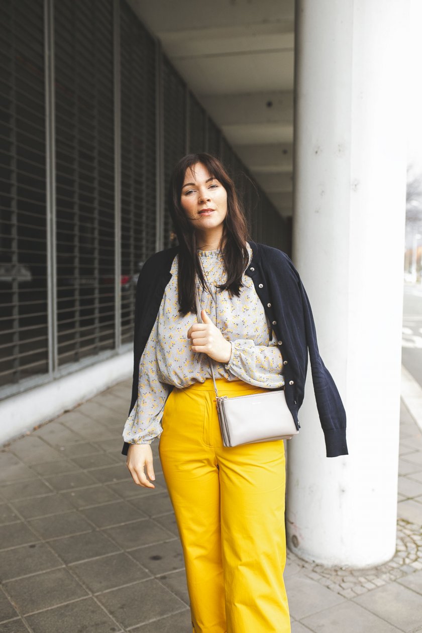 Frühlingsoutfit mit gelber Hose und Blumenprint-Bluse: Modetrend Frühjahr/Sommer 2019 zum Nachshoppen!