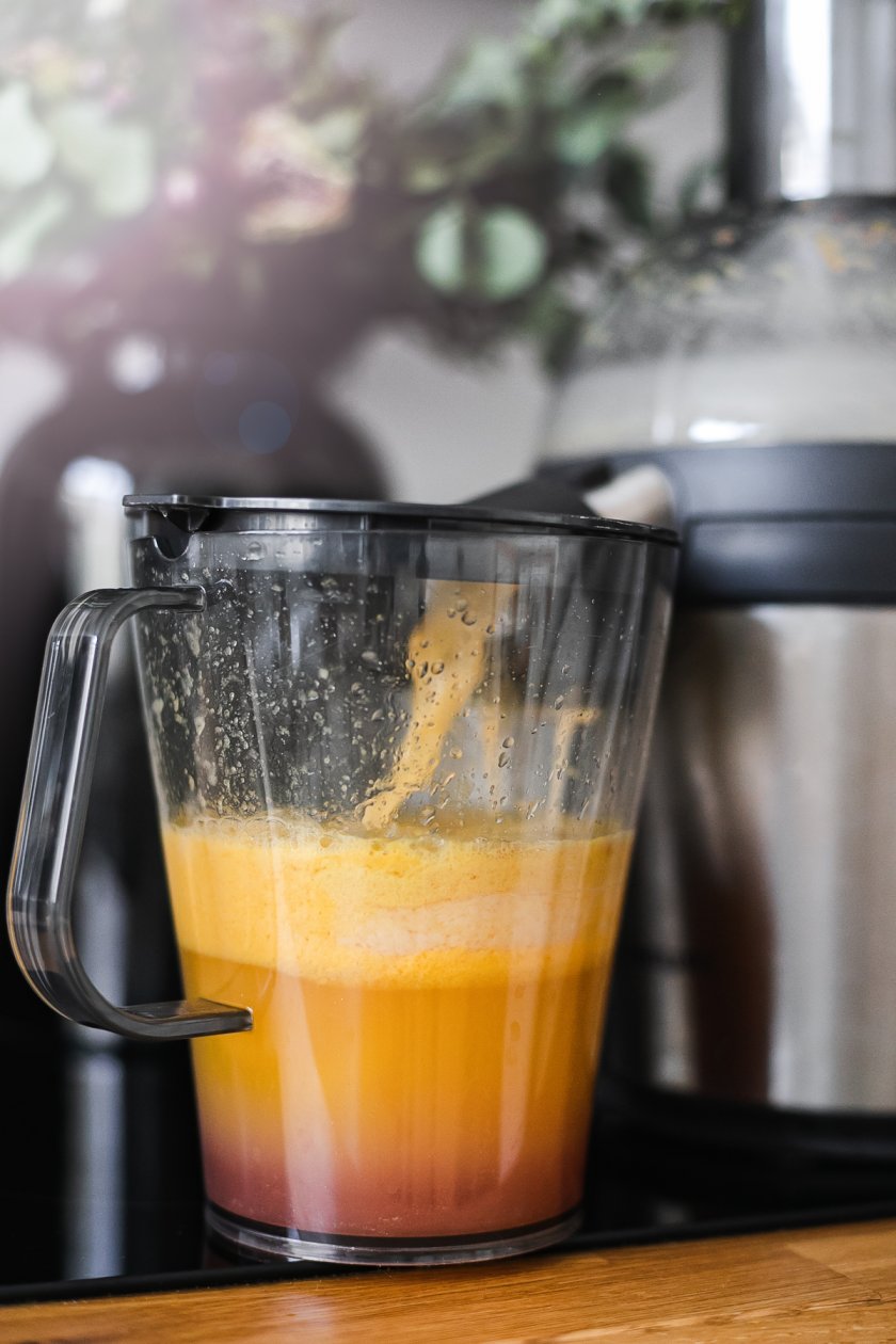 - Kurkuma nach belieben zum entsafteten Obst geben.