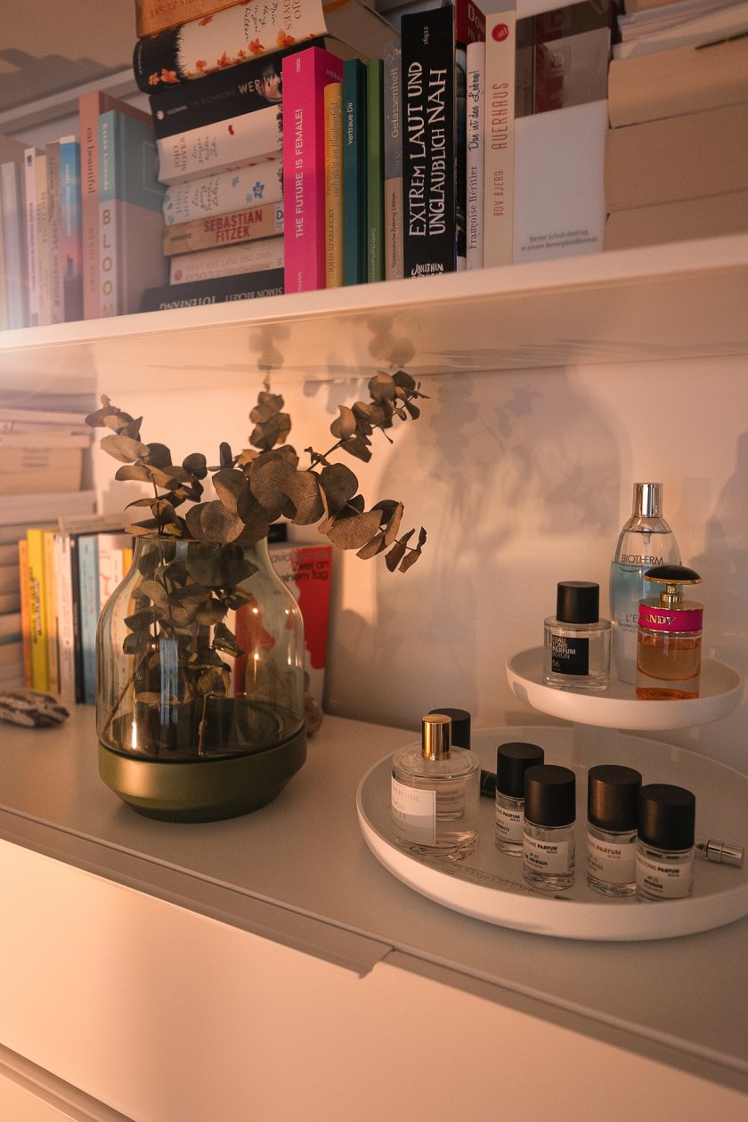Ich bin ein kleiner Bücherwurm und da ich am liebsten abends vor dem Einschlafen lese, wie ich euch schon in diesem Beitrag verraten habe, liegt es nahe, mein Bücherregal ins Schlafzimmer zu integrieren. Das große offene Regal, fügt sich charmant in mein Schlafzimmer ein und bietet jede Menge Platz für meine Büchersammlung.