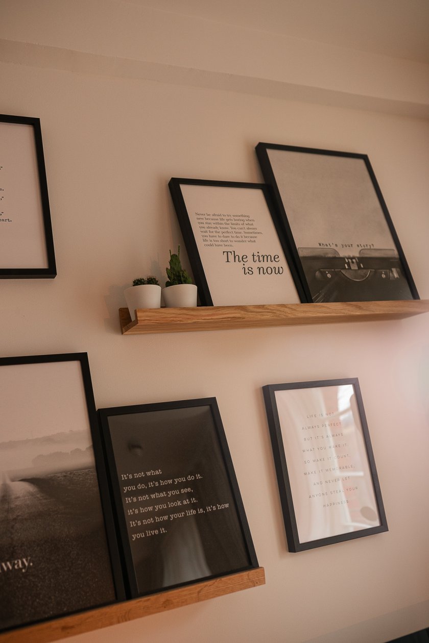 Über meinem Schreibtisch habe ich eine kleine Bilderwand mit Sprüchen angebracht. Die mich motivieren und mir Power geben. Das ist vor allem sehr hilfreich an Tagen, an denen die Motivation ohne mich in den Bus gestiegen ist und ich vergeblich auf ihre Rückkehr warte. Ein kleiner inspirierender Tritt in den Hintern, ist da die perfekte Lösung. Hilft meistens, aber leider nicht immer.