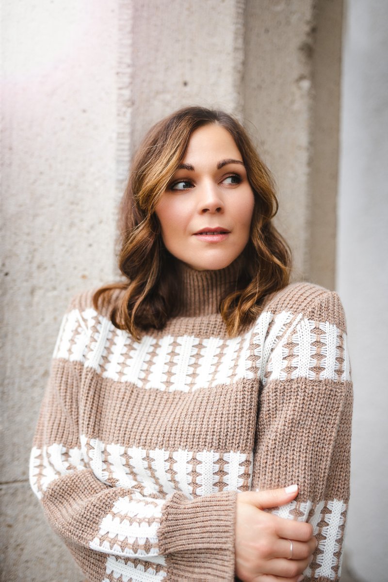 Bei meinen Frühlingsoutfits spielen Röcke eine zentrale Rolle. Genau deshalb starte ich in die Frühlingssaison mit einem Midirock-Style. Dafür habe ich ein ganz klassisches Modell ausgewählt, welches ich mit einem kuscheligen Pullover kombiniert habe. Alles in allem ein warmer und eleganter Look, der durch seine helle und freundliche Farbrange sehr gut in den Frühling passt. Das Outfit strahl und verleiht gute Laune, selbst dann, wenn die Sonne sich einmal nicht zeigt.