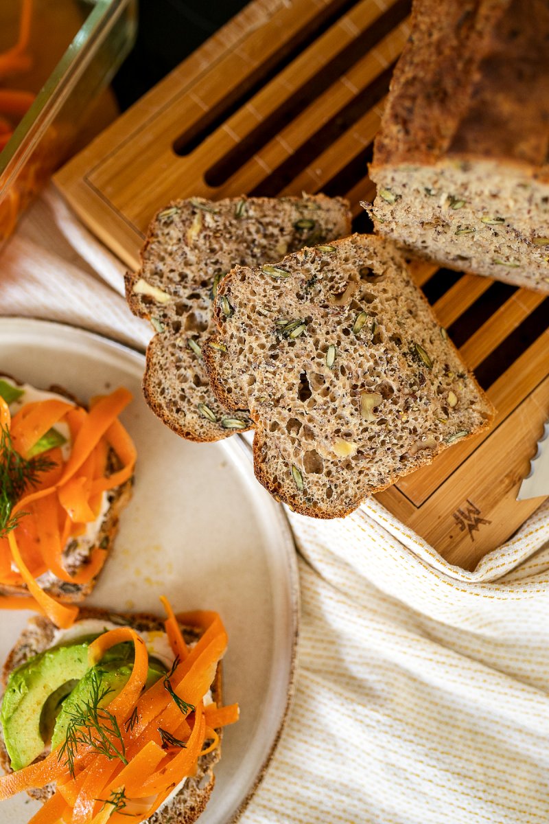 Das Brot zusammen mit veganem Frischkäse, veganem Räucherlachs und etwas Dill servieren! Ich wünsche euch einen guten Appetit.