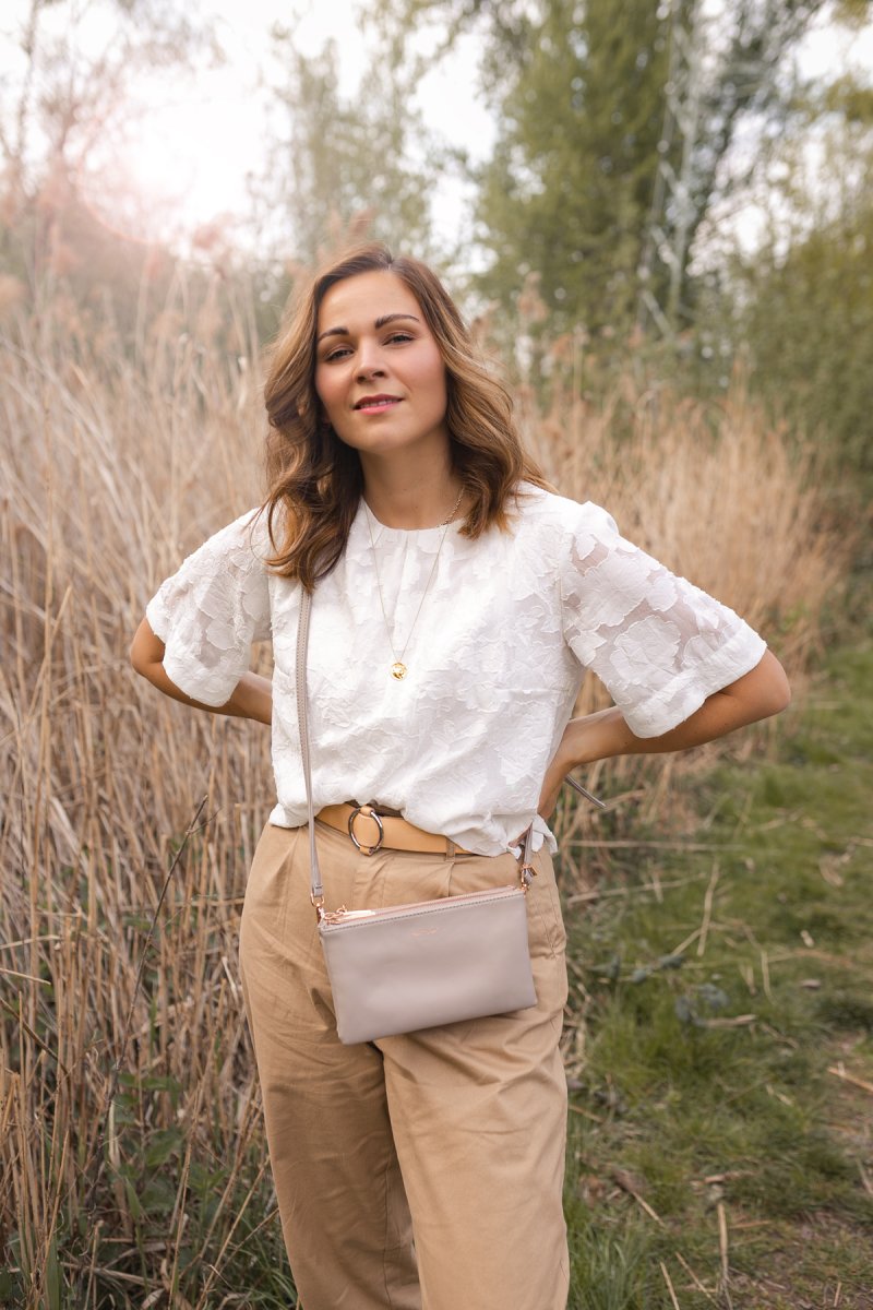 In meinem heutigen Frühlingsoutfit setze ich auf helle Farbnuancen. Ich liebe die sanften Töne im Frühling und Sommer einfach so sehr! Bereits in den letzten Jahren habe ich immer wieder zu Outfitkombinationen in dieser Farbrange gegriffen. Sei es das Sommeroutfit mit diesem weißen Midikleid oder dieser Style mit beigen Blazer hier auf dem Modeblog. Auch in diesem Frühling/Sommer 2020 setzte ich wieder auf Kombinationen in Beige und Weiß. Wie ich die beiden zarten Nuancen miteinander kombiniere, zeige euch mit dem heutigen Alltagsoutfit.