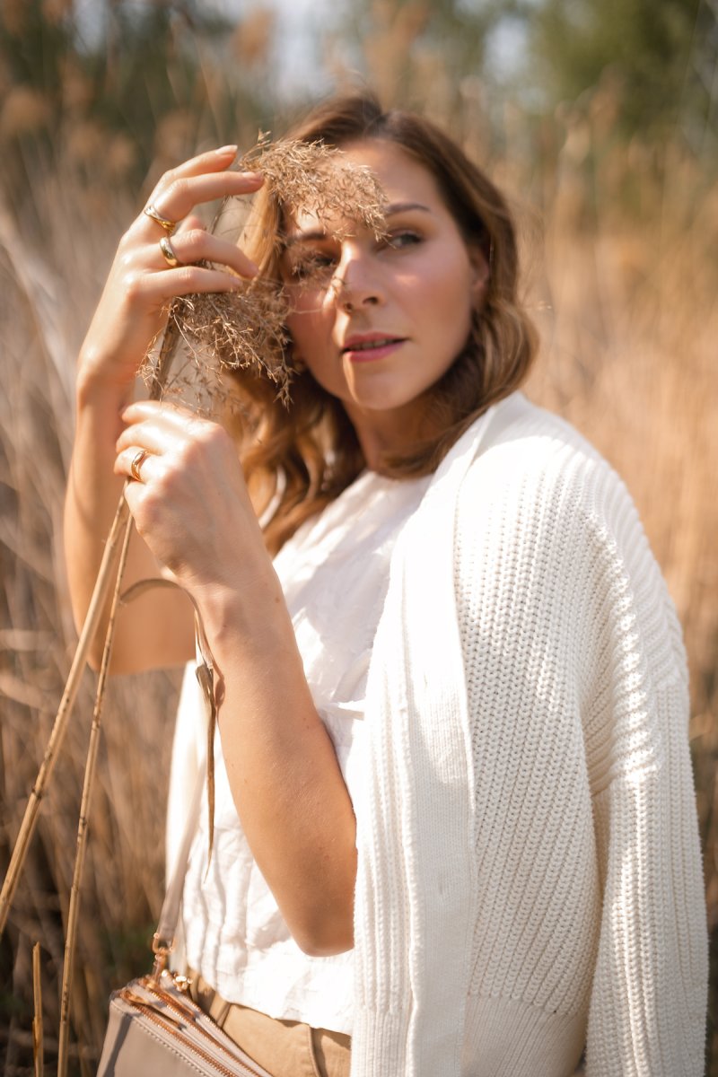 Wie gefällt euch mein Frühlingsoutfit mit beiger Stoffhose, weißem Cardigan und Veja V-10 Sneaker? Lasst es mich gerne in den Kommentaren wissen, ich freue mich auf euer Feedback!