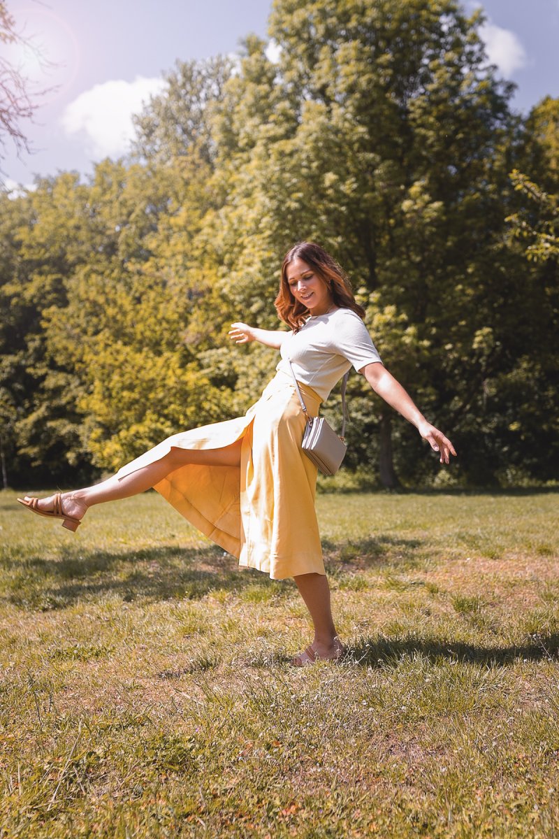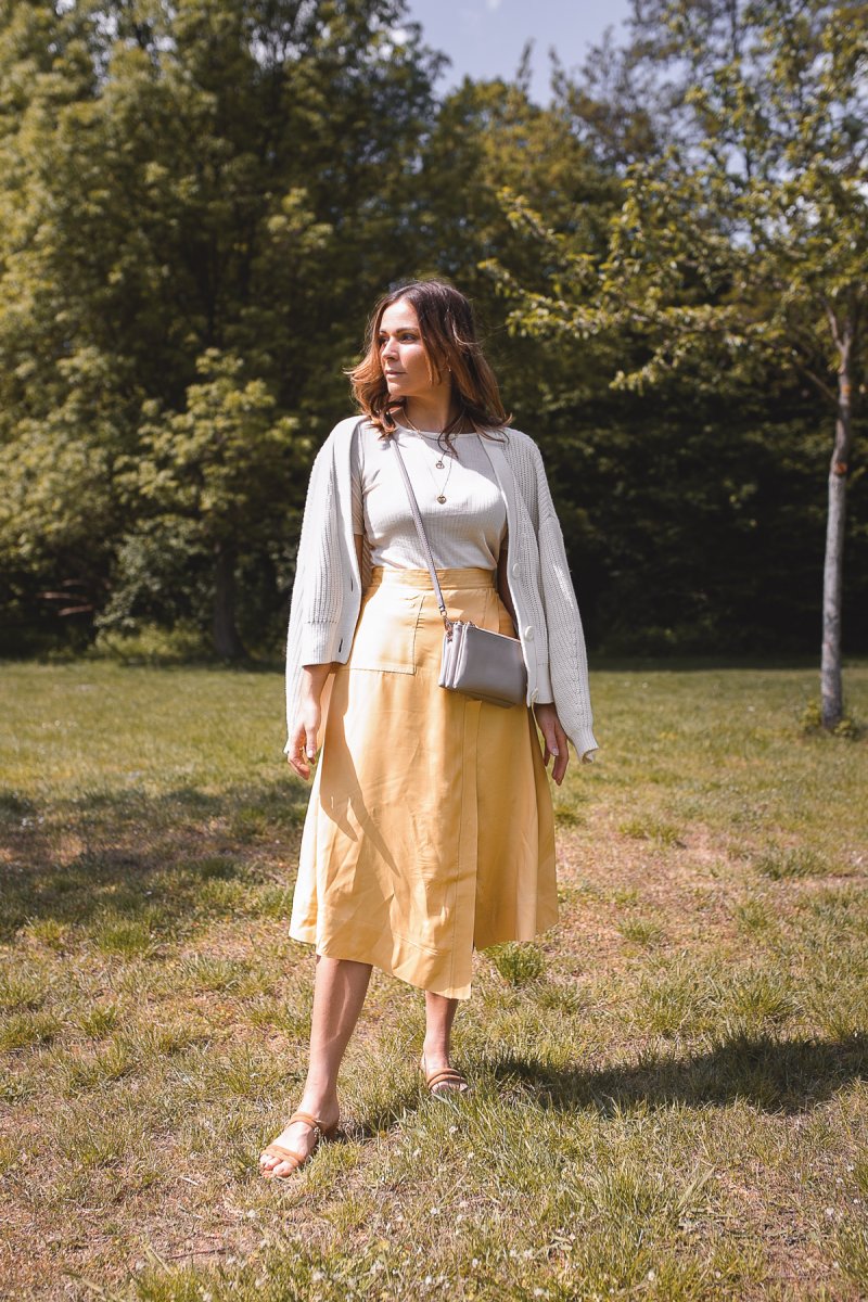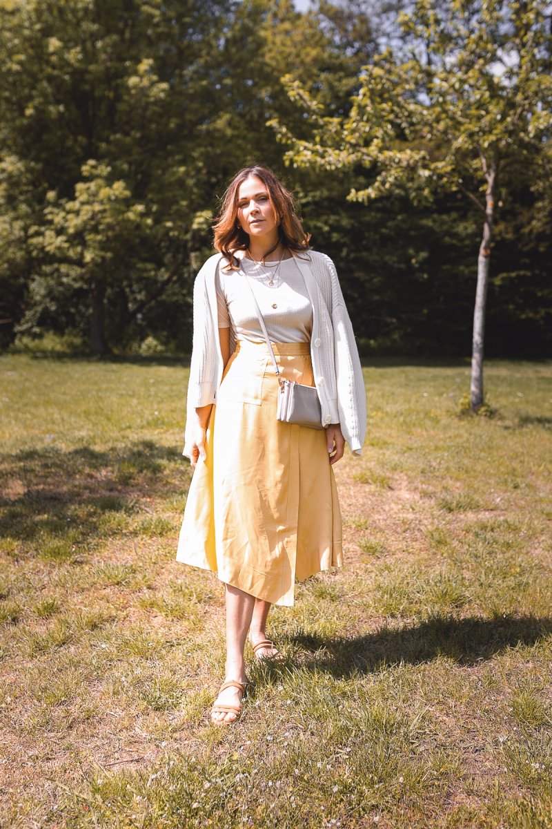 Cardigan und Midirock sind eine Outfitkombination, auf die ich im Frühling immer gerne zurückgreife. So kann ich problemlos an kühleren Frühlingstagen das Sommerflair genießen und die geliebten Sommerteile vorab ausführen. Der gelbe Midirock ist genauso ein Sommerkleidungsstück, das viel zu schade ist, um es nur eine Minute länger im Kleiderschrank verharren zu lassen. Genau deshalb zeige ich euch heute, wie ihr mit dem richtigen Twist eure liebsten Sommer Outfits ganz einfach schon im Frühling salonfähig macht.
