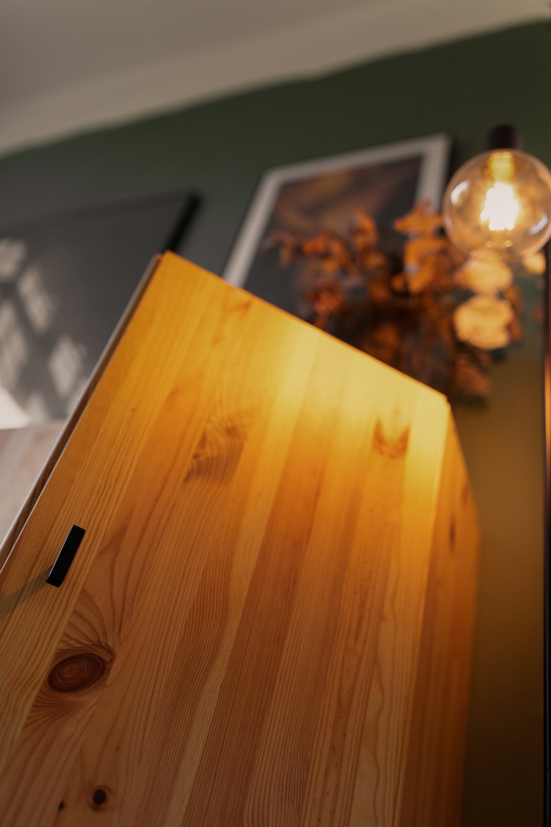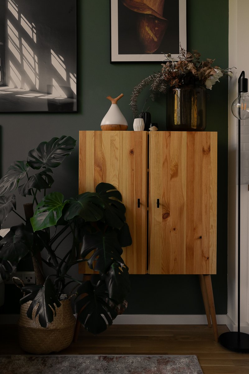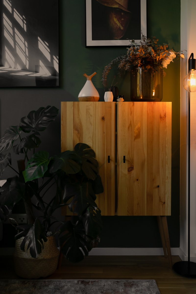 Wie ich euch oben bereits verraten habe, bin schon längere Zeit auf der Suche nach dem passenden Hochschrank für mein Wohnzimmer. Der Schrank soll nicht zu tief sein und sich ganz natürlich als Seitenelement mit in das Wohnzimmer integrieren. Dass es ein Schrank in Holz werden sollte, stand dabei von Anfang an fest – ich mag die Wärme, die von Echtholzmöbeln ausgestrahlt wird. Sie verleihen dem Raum so viel Gemütlichkeit, die ich vor allem in den kühleren Monaten sehr zu schätzen weiß.