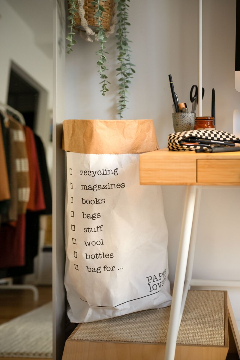Die kleinen Details machen den Unterschied. Um meinen Arbeitsplatz noch wohnlicher zu gestalten, setze ich auf Accessoires wie diesen Mülleimer. Aber auch Kerzen und ein schöner Stifthalter verleihen dem Arbeitsplatz eine ganz persönliche Note.