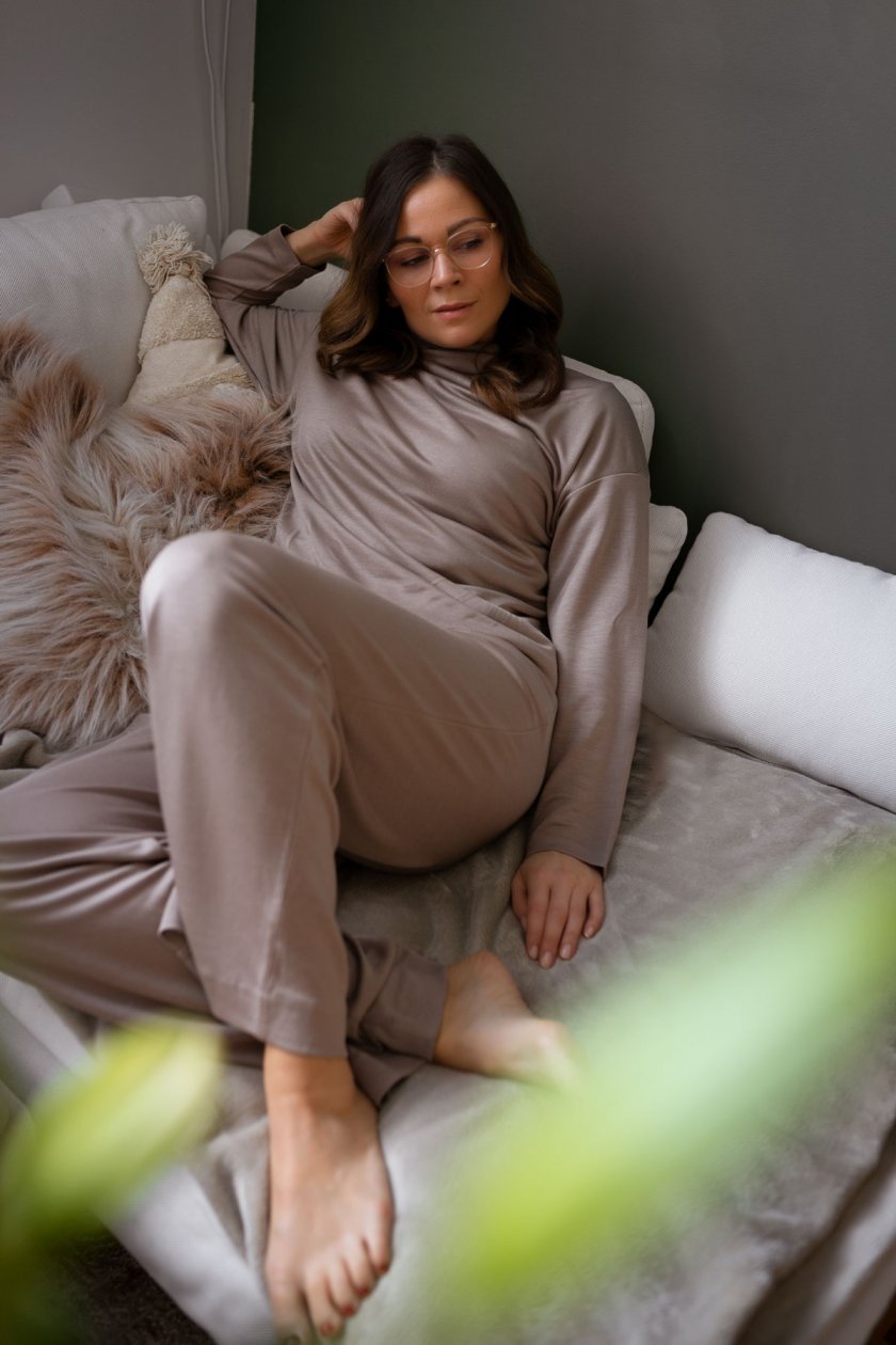 Mein heutiges Loungewear Outfit im Athflow Stil ist sehr simple. Ich habe mich für eine Hose mit weiten Beinen entschieden, weil ich finde, sie repräsentieren den schicken Trend auf eine gekonnte Weise. Passend dazu trage ich ein leichtes Longshirt, das sich in und außerhalb der Hose gleichermaßen gut macht. Und das war es auch schon. Dieser Style ist supereinfach und sieht dennoch so unglaublich schick aus. An die Füße ziehe ich noch flauschige Pantoffeln und fertig ist mein Style für in der Wohnung. Möchte ich meine Zeit doch mal auf dem Balkon verbringen, ergänzt sich der Look supergut mit einem Cardigan – wie diesem hier aus einem Sommer Outfit.