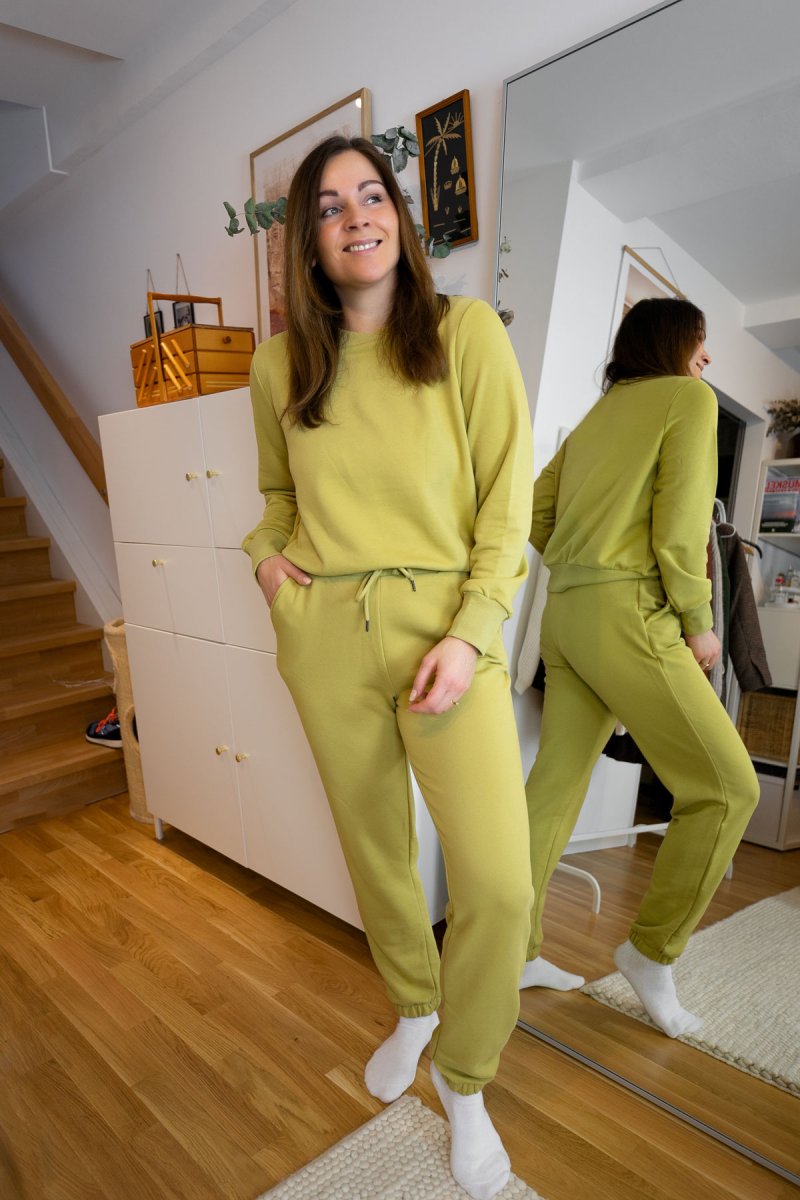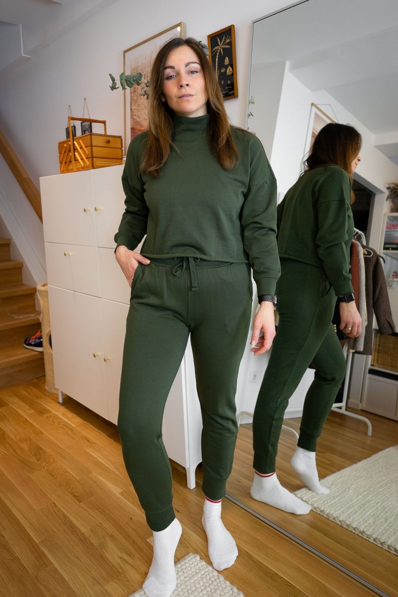 Der dritte Jogging-Style ist definitiv auch der auffälligste. Ich liebe diesen Loungewear Anzug in einem satten Grünton. Dieser macht bei mir gleich gute Laune und stimmt mich auf den bevorstehenden Frühling ein. Besser geht es gar nicht.