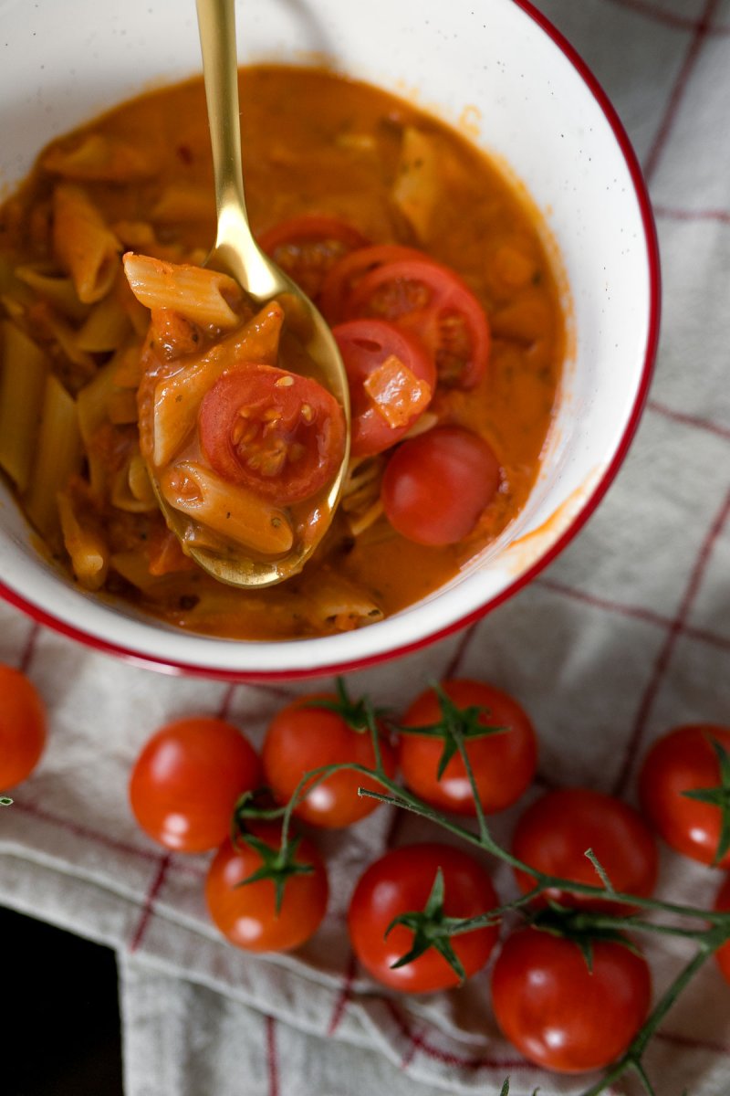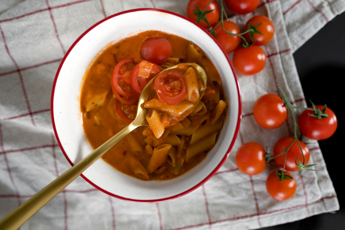 So kreiert ihr ganz ohne Aufwand eine leckere Tomatenpasta aus einer Tomatensuppe