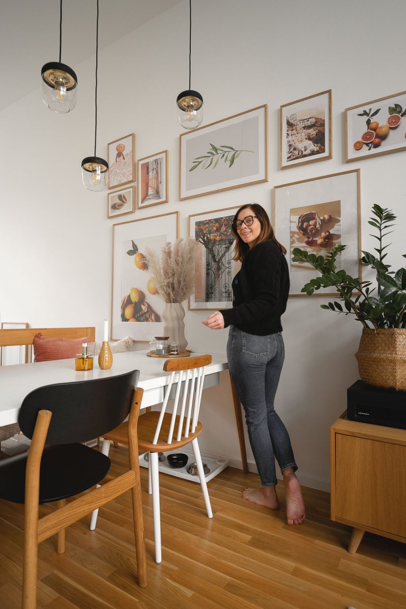 So habe ich das Farbkonzept für meine Bilderwand im Esszimmer geplant. Das Ess- und Wohnzimmer ist der Dreh- und Angelpunkt in meiner Wohnung. Dort empfange ich meine Gäste, habe nette Filmabende und verbringe dort die meiste Zeit in meiner Wohnung. Und genau diese Priorität hat das Zimmer auch in Sachen Einrichtung und Styling.