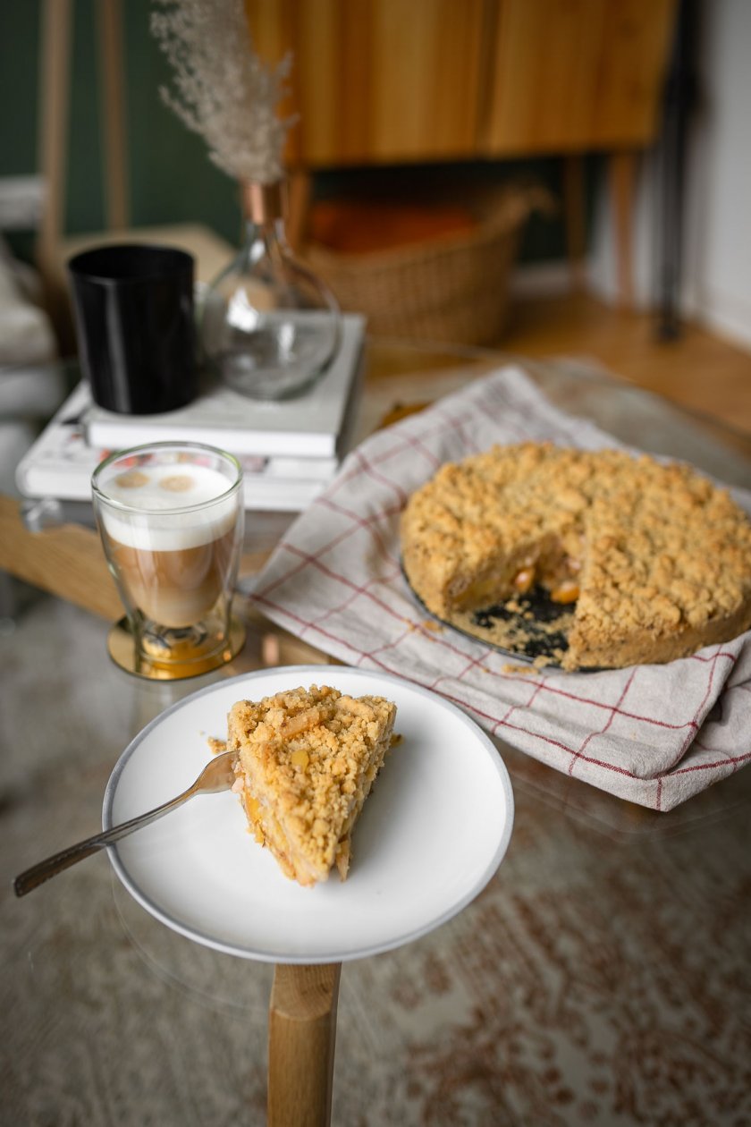 Veganer Streuselkuchen mit Äpfeln und Pudding