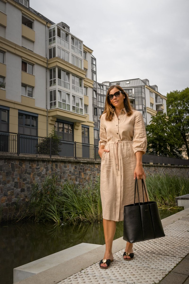 Hemdblusenkleider sind nicht nur im Sommer wunderschöne Begleiter, auch an Spätsommertagen kommen sie bei mir mit den geeigneten Accessoires regelmäßig zum Einsatz. Passend zu den aktuellen kühleren Temperaturen habe ich ein Hemdblusenkleid Outfit für euch, das als City Look oder als Business Outfit besticht und euch einfach umwerfend gut aussehen lässt. Was diesen Look so elegant und zeitlos macht, das verrate ich euch jetzt hier auf dem Modeblog.