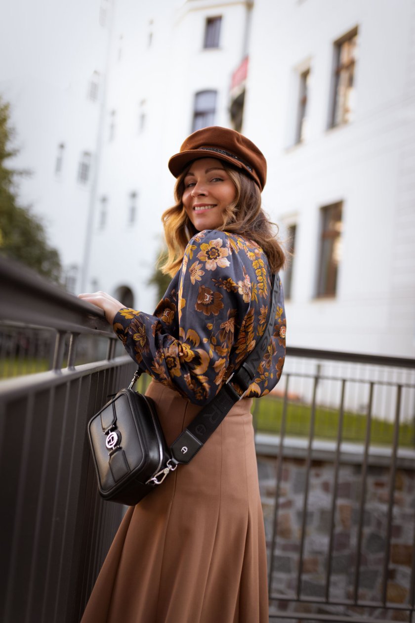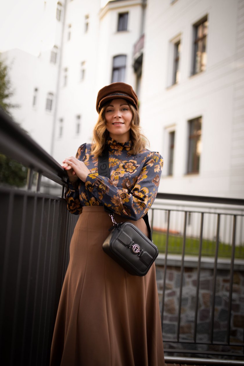 In meinem heutigen Style zeige ich dir ein braunes Modell, das wie gemacht ist für die farbenfrohen Herbst. Der warme Braunton findest sich auch in meiner Baker Boy Mütze wieder – die den Look auch im Detail super ergänzt.