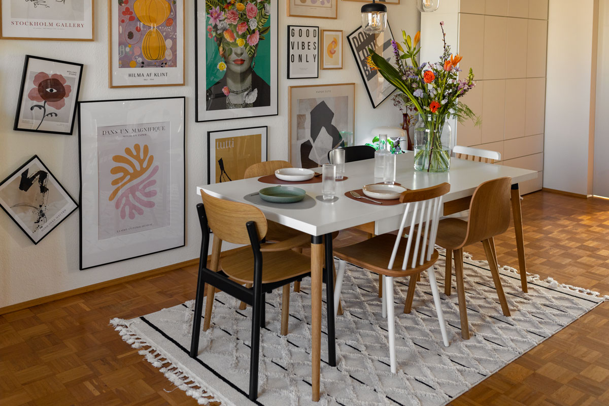 Et voilà und fertig ist mein Esszimmer. Ich bin richtig gerne in diesem Bereich meiner Wohnung und fühle mich dort pudelwohl. Verrate mir, was dir in deinem Essbereich wichtig ist und ob du genauso hochwertige Möbelstücke oder vielleicht sogar auf ein Tischunikat setzt. Ich freue mich auf dein Feedback!