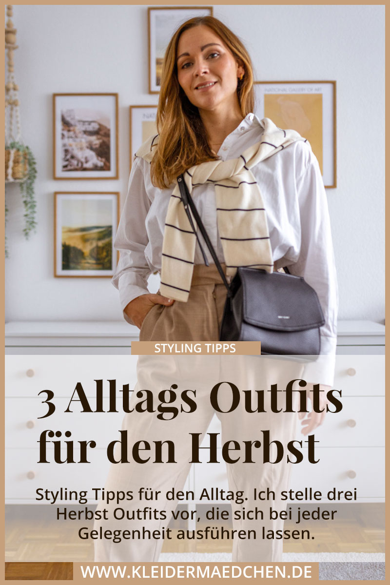 Drei Herbst Outfits, die ich ständig trage, möchte ich heute hier auf dem Modeblog mit euch teilen. Nachdem ich euch 3 Herbst Looks mit Bluse, Cardigan und Hemd hier vorgestellt habe, geht es in der heutigen Reihe von „Was ziehe ich an“ um alltagstaugliche Styles für den Herbst, die aber darüber hinaus noch den gewissen Funken extra Power haben. Die Looks bestechen im Office oder in der Freizeit und lassen euch einfach bei jeder Gelegenheit elegant und frisch aussehen. Überzeugt euch selbst.