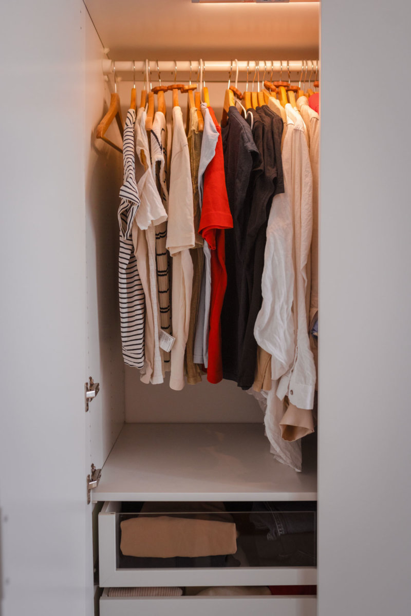 Nachdem du jetzt deinen Stil sowie deinen Farbtypen kennst, wird das Umstrukturieren des Kleiderschranks zum Kinderspiel. Als erstes wird alles aus dem Kleiderschrank ausgeräumt. Was du wieder einsortieren kannst, sind Unterwäsche, Sport- sowie Homewear. Da würde ich dir aber auch empfehlen, noch einmal alle Kleidung durchzusehen und ggf. auszusortieren.