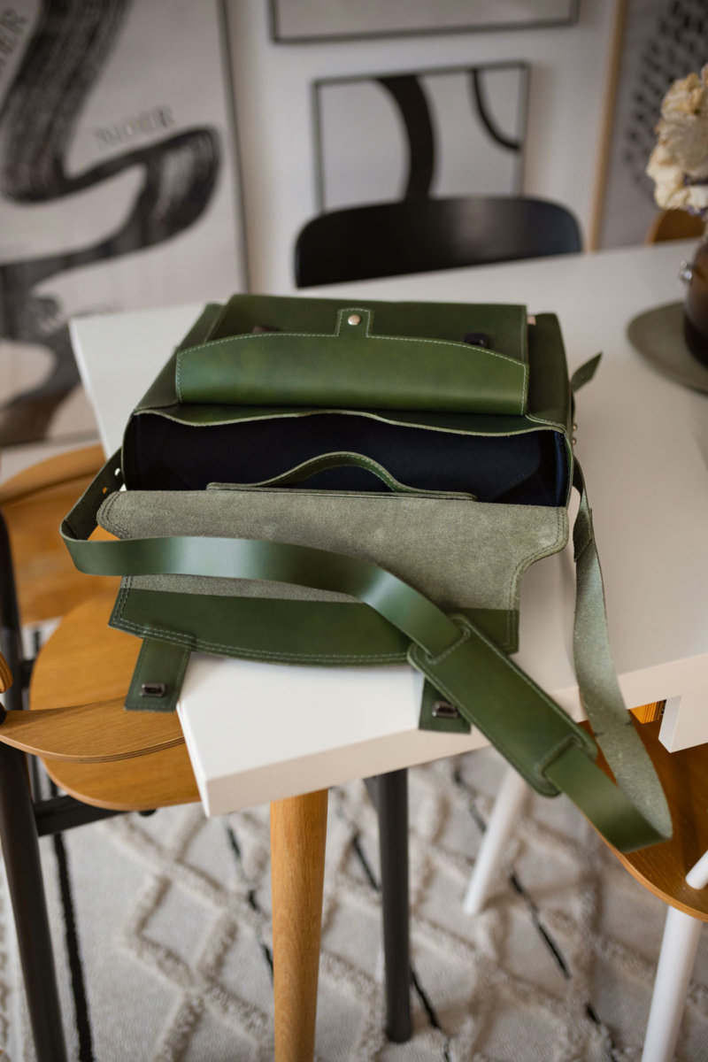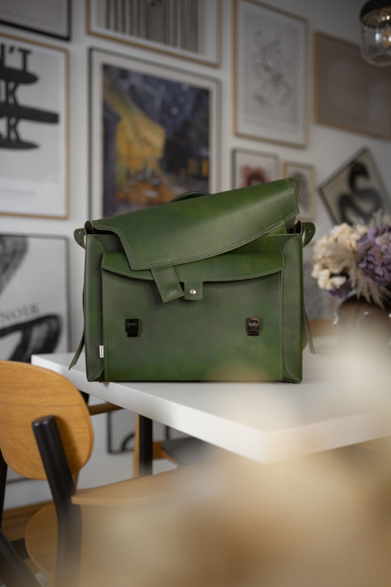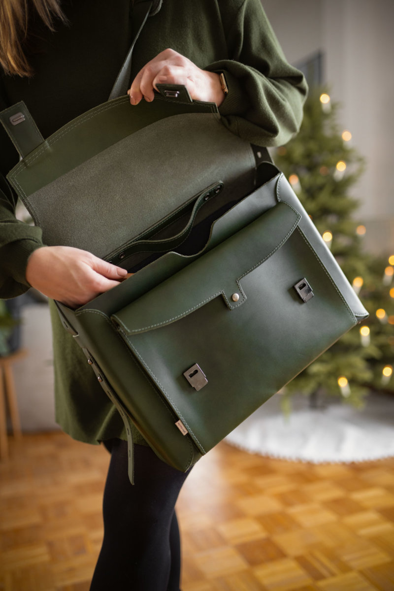 Die grüne Aktentasche für Damen ist ein eleganter Begleiter für stilvolle Frauen. Sie ist schick und gleichzeitig praktisch und bietet jede Menge Stauraum. In ihr verschwinden ein A4-Aktenordner und ein 15,6 Zoll Laptop problemlos. Das Innenfach der gepolsterte Tasche ist flexibel. Die darin enthaltene Trennwand kann durch ein Klettband problemlos entfernt und wieder eingesetzt werden. So bist du komplett frei in der Aufteilung und für alle deine Bedürfnisse gewappnet.