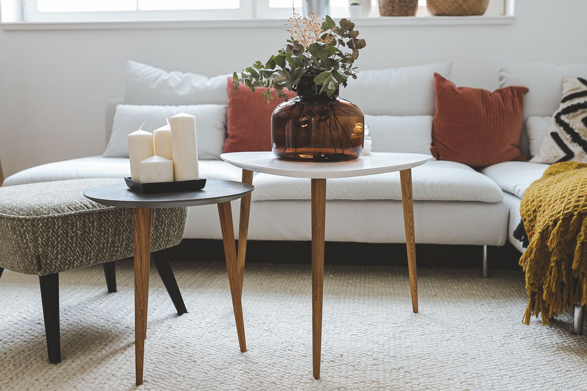 In meiner neuen Wohnung war mir schnell klar, dass ich sie zukünftig als Couchtische nutzen möchte. Mit ihren eichefarbenen Beinen und lackierten Ablageflächen in Weiß und Grau passen sie einfach wunderbar in meine gemütliche Wohnzimmerecke.
