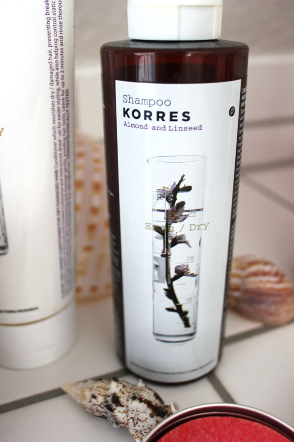 Schritt 2: Als nächstes trage ich das Korres Shampoo Almond and Linseed nur in meinen Haarlängen auf. Dieses Shampoo versorgt, sehr trockenes Haar mit viel Feuchtigkeit.