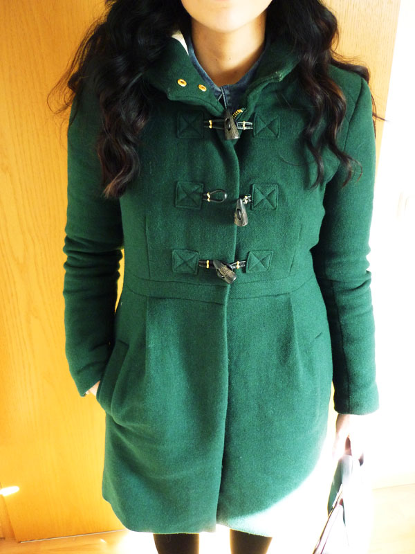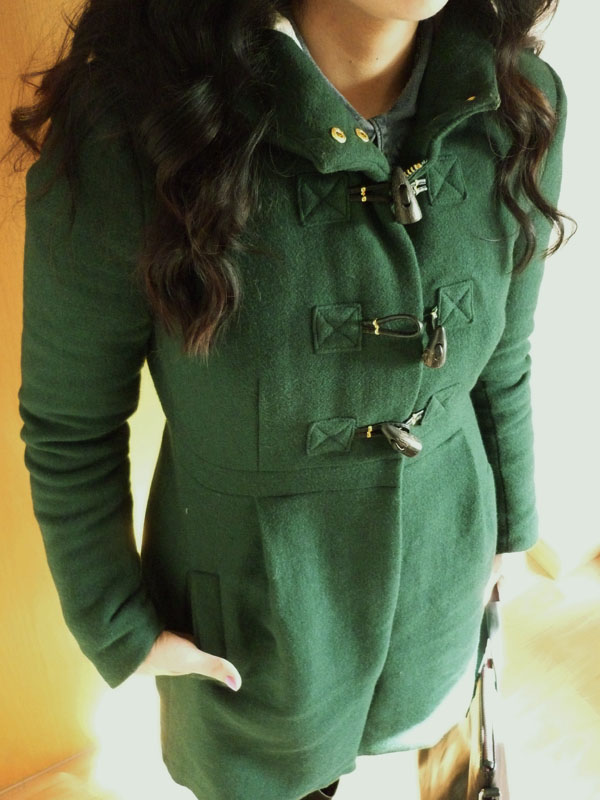 Gesehen, verliebt und gekauft! Darf ich vorstellen, mein neuer jägergrüner Mantel von Zara. Wie lange war ich auf der Suche nach genau diesem Schmuckstück. Eine gefühlte Ewigkeit und endlich ist er mein. Er besticht durch klare Eleganz, ist aber ebenso bequem und warm. Geschlossen wird er mit einem Reißverschluss und zusätzlich sowohl mit Druckknöpfen als auch Hacken. Dank dir, mein neuer treuer Begleiter, trotze ich der Kälte!