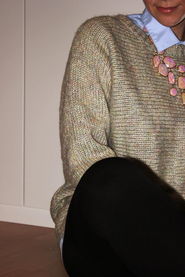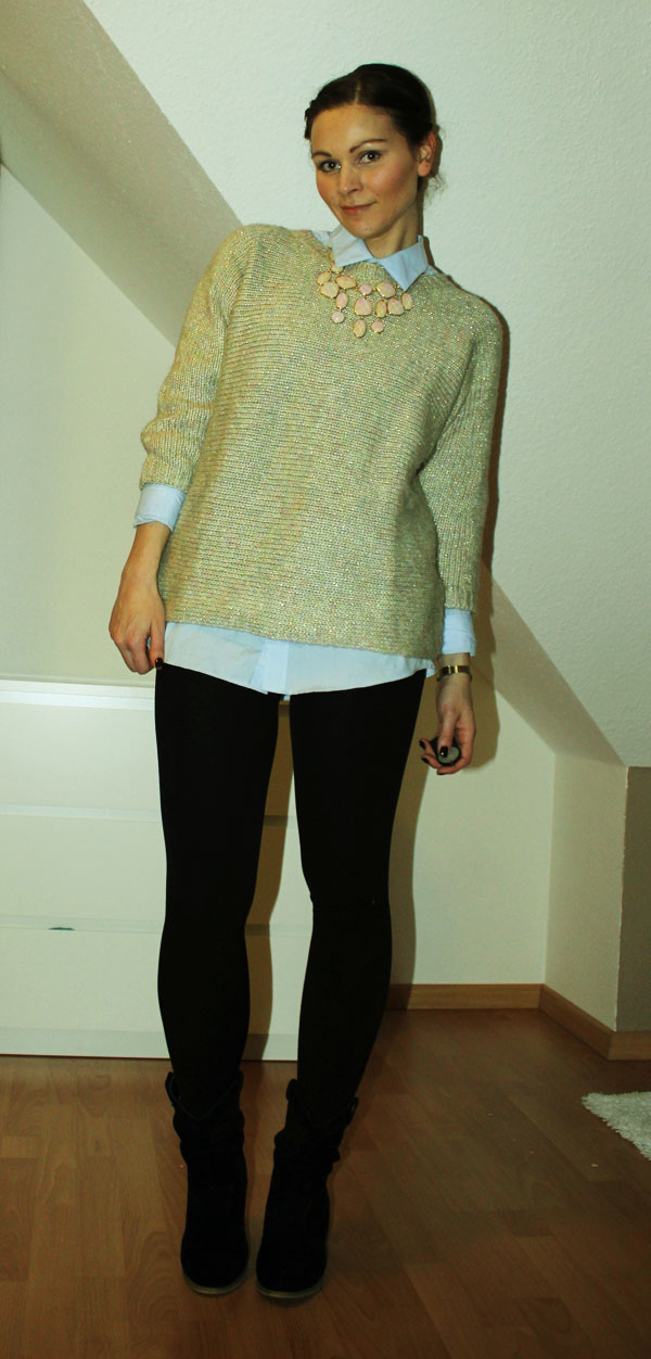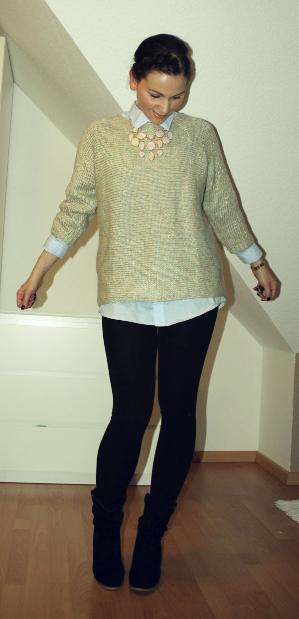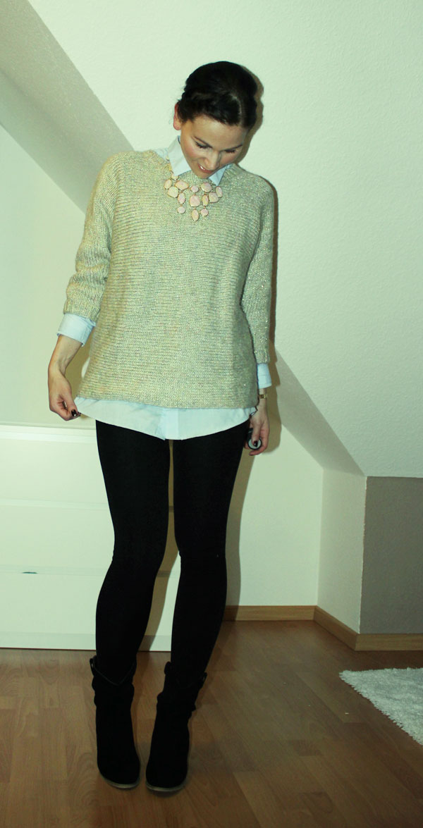 After a lovely trip to Leipzig with a wonderful inner-city, nice meeting-points and an inviting christmas market, i’m back with a wonderful new monki sweater. Monki is a new clothing brand. Today i combined the monki sweater in glitter look with a casual men shirt by H&M and the statement necklace by H&M.