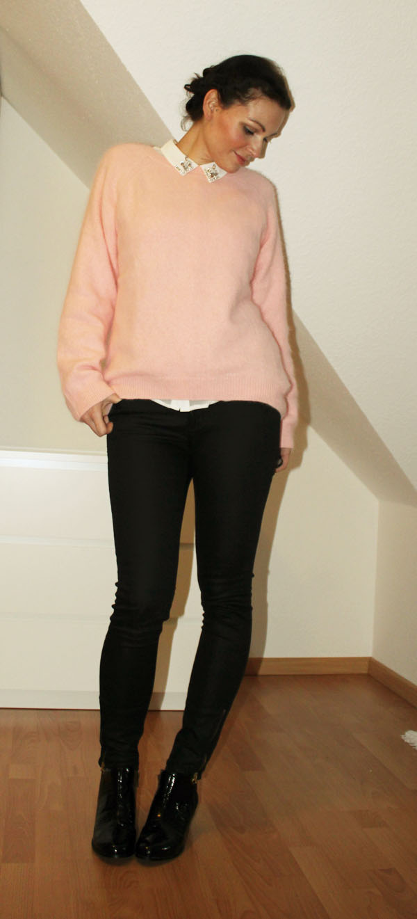 Manchmal blendet man die rationalen Entscheidungen aus und lässt sich von seinen Emotionen leiten. Klingt kompliziert, ist aber ganz einfach: haben, haben, haben. So kaufte ich mir den Lana Del Ray Sweater und nahm die vorsichtige Skepsis in Kauf. Bisher bereut habe ich es nicht, er ist wunderschön. Passt auch passend zu meinem heutigen Outfit. Eine schwarze Jeans, die tollen Lackschuhe von H&M – welche ich in letzter Zeit sehr häufig trage – und schon ist das Tagesoutfit perfekt.
