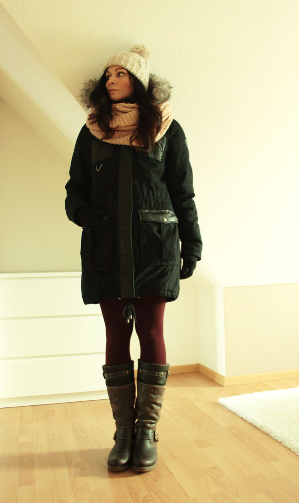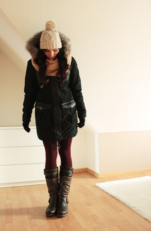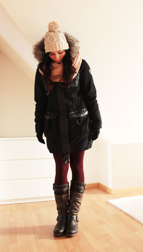 Mütze (H&M) | Schlauchschal (H&M) | Jacke (Vero Moda) | Leggings (Gina Tricot) | Stiefel (Remonte Dorndorf)