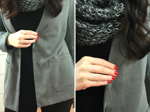 Dazu trage ich heute einen H&M Blazer in grau-melierter Farbe. Gekauft habe ich ihn bereits im letzten Sommer. An Strahlkraft hat er bisher nicht verloren und kommt noch immer in vielen Business Outfits von mir zum Einsatz. Darunter trage ich einen Pullover von Zara in der Farbe schwarz. Der Zara Pullover ist relativ casual-einfach geschnitten, betont dadurch aber den Blazer stärker.