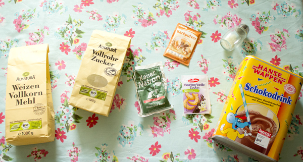 2. Mehl, Zucker, Vanillezucker, Kakao, Backpulver, Natron und Salz in einer Rührschüssel vermischen.