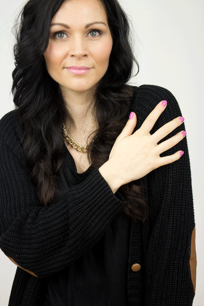 Shirt, Cardigan, Hose, Ballerinas von H&M, Kette von Bijou Brigitte, Nagellack 36 Splash of Grenadine von Essie, Lippenstift 130 Frozen Rose von Catrice Ultimate Colour