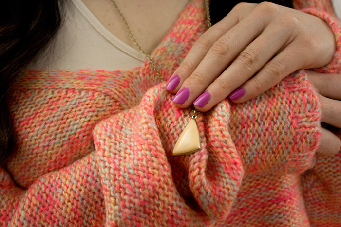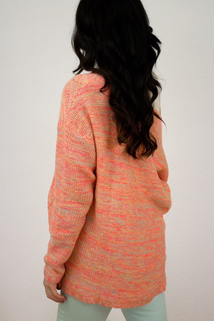 Schon im Kindergarten entdeckte ich meine Leidenschaft für Pastelltöne. Die Tube mit Abtönweiß wurde von Mutti immer in „Extra Large“ gekauft und dennoch war sie ständig alle. Es versteht sich von selbst, dass ich bei diesem farbenfrohen Sweater zuschlagen musste. Erinnert er mich doch so sehr an die „abstrakten“ Zeichnungen aus Kindertagen.