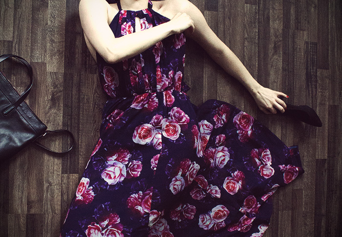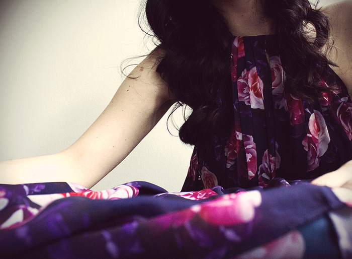 Wie verzaubert habe ich mich gefühlt, als ich dieses Kleid entdeckte. Ich habe nicht lange gezögert und das Kleid sofort bestellt. Die floralen Muster in Kombination mit den unterschiedlichen Lilatönen repräsentieren für mich das Gefühl von Sommer. Ich assoziiere damit heißte Sommertage und laue Sommernächte, Gartenparties mit viel Gelächter, kühle Getränken und natürlichen einen abkühlenden Sommerregen, der auf mich herab prasselt und zum tanzen einläd. Ja, ich freu mich auf den Sommer und kann es kaum erwarten, in meinem neuen Blumenkleid der Sonne entgegen zu tanzen.