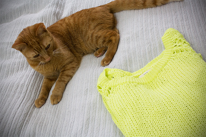 Wie findet ihr den Sweater in der knalligen Sommerfarbe? Lillie steht dem knalligen Gelb noch etwas skeptisch Gegenüber.