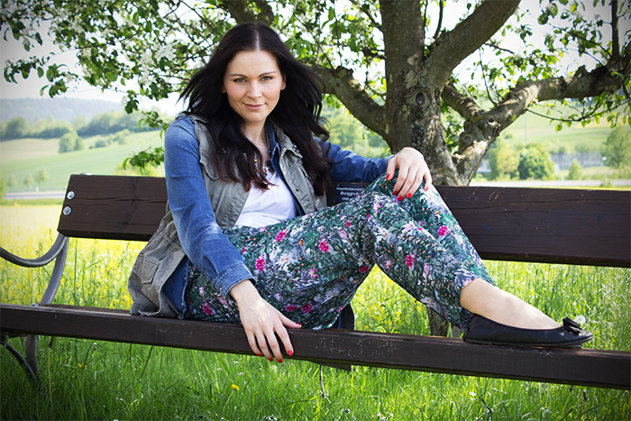 Ich liebe Blumenmuster, vor allem im Frühling und Sommer. Kein Wunder also, dass ich an dieser Blumenhose nicht vorbei gehen konnte. Kombiniert habe ich sie mit einem schlichten weißen T-Shirt und einer auffälligen Statementkette. An den Füßen trage ich bequeme schwarze Schleifenballerinas und wenn der Wind doch mal aufgekommen ist, habe ich mir mein Jeanshemd und Weste übergestülpt. Das Outfit hat mit Sicherheit nicht überall nur Fans, aber es verbindet doch Trends und Muster mit zeitgemäßen Farben. Wie ist es bei euch, wie findet ihr florale Prints?