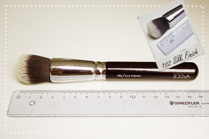 Das sagt Zoeva über die #102 – Silk Finish: „Der 102 Silk Finish ist ein Foundation Pinsel zum Auftragen und Verblenden von Foundation, Puder und Mineral Makeup. Dank seinem formstabilen Design liegt er wunderbar in der Hand. Alle Makeup Produkte lassen sich herrlich sanft und einfach in die Haut einarbeiten.“