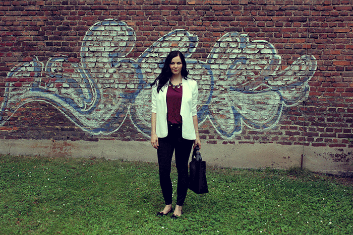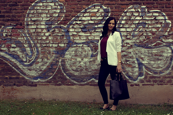 Sehr schickes Outfit! Ich trage auch sehr oft Kombinationen aus Jeans, lässigem T-Shirt, Blazer und Ballarinas 🙂 das passt einfach immer! Ich finds bequem, zu jedem Anlass passend und mädchenhaft 😀