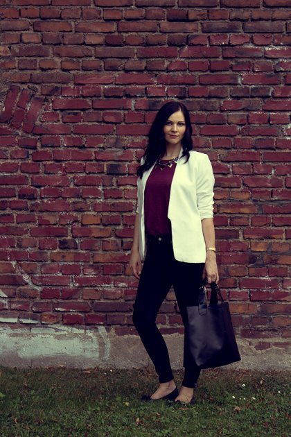 Why I like it? The outfit is extremely changeable. It is suitable for casual, sportive and elegant looks and I feel very well when I wear it. On cool days the blazer keeps warm. On warm days I prefer to take of the Blazer. I just wear it over my shoulder. Finally, I choose suitable accessories for my casual elegant look.